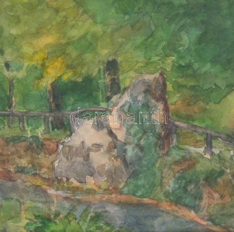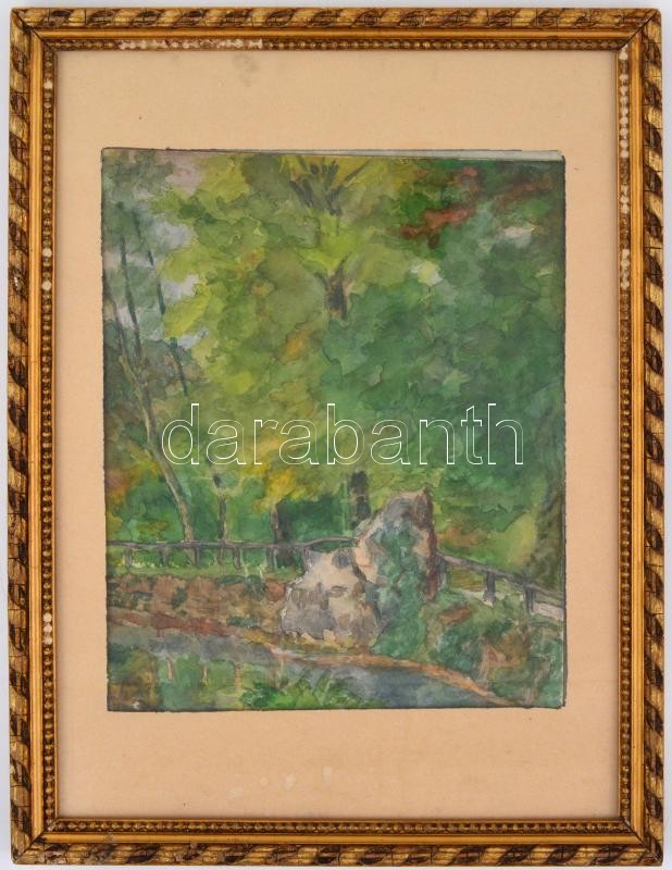 Tull jelzéssel: Táj. Akvarell, papír, üvegezett, sérült keretben. 29x2...