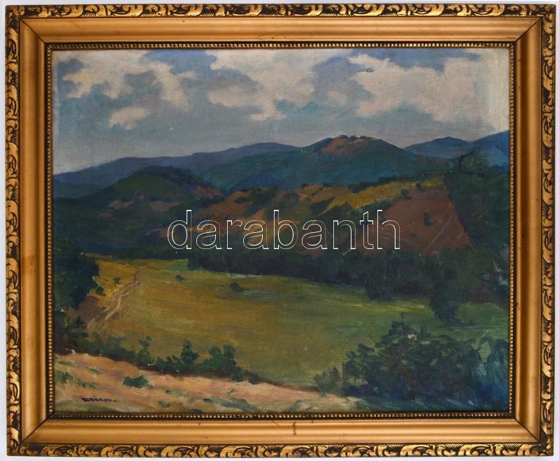 Winter (?) jelzéssel: hegyvidéki táj. Olaj, vászon, javított sérülésse...