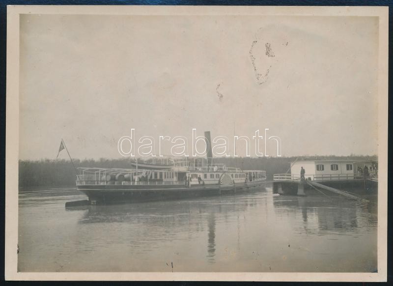 1907 "MÁV" lapátkerekes gőzhajó Bajánál, Farkas Ödön bajai amatőr fényképész hagyatékából, fotó, foltos, 13×18 cm