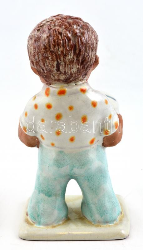 Újságot olvasó sün. Iparművész kerámia. Matricával jelzett. Kézzel fes...