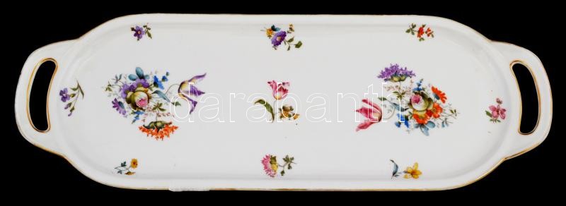 Epiag Hüttl, Bán és Mihalik porcelán süteményes tál. Matricás jelzett, kis kopásokkal 45x16 cm