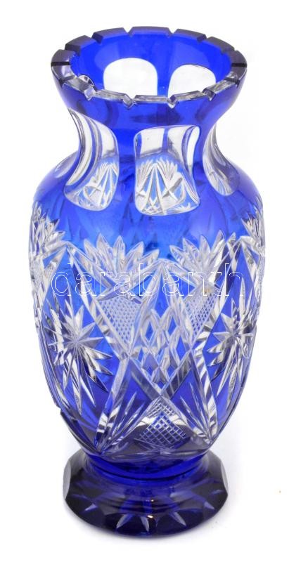 Kék ólomkristály váza. Hibátlan m: 22 cm