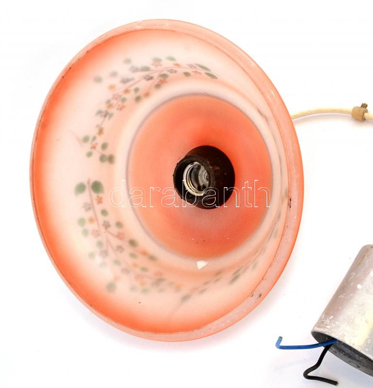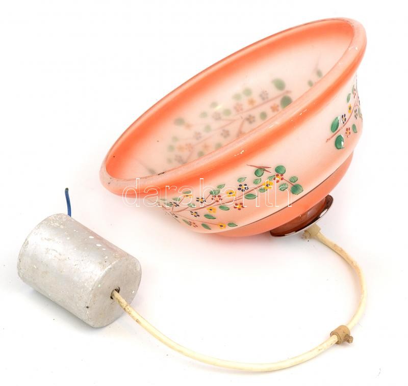 Retro üveg lámpa búra, kézzel festett, nem kipróbált, kisebb sérüléssel, d: 25 cm