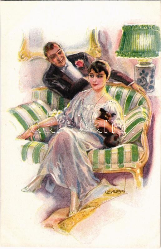 1920 Romantic couple. Italian lady art postcard. "ERKAL" No. 318/4. s: Usabal