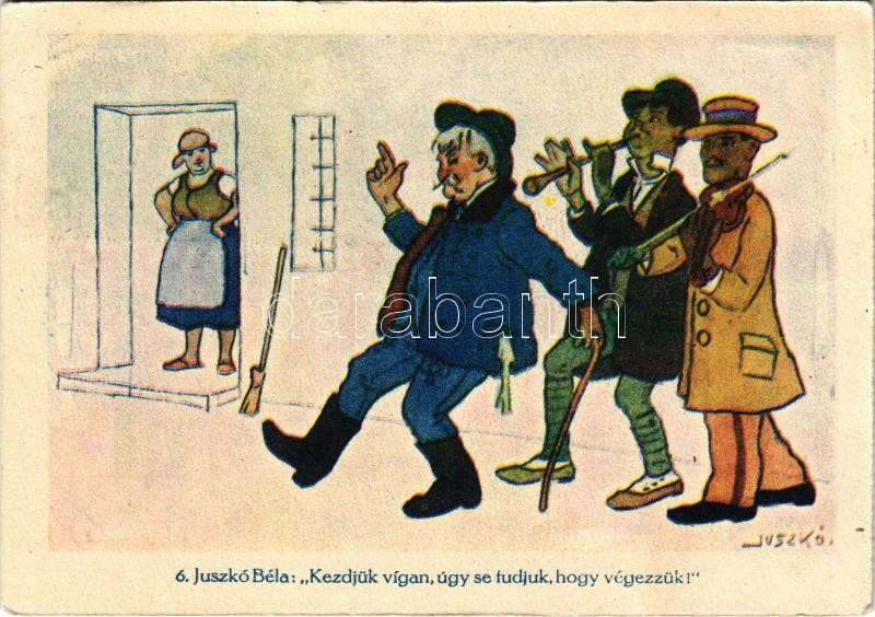 Kezdjük vígan, úgy se tudjuk, hogy végezzük! Tombola-levelezőlap "...