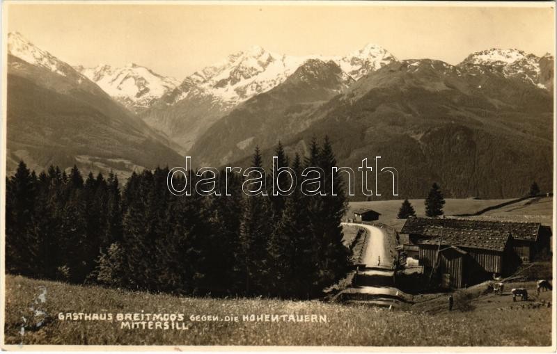Mittersill, Gasthaus Breitmoos gegen die Hohentauern / hotel, inn, cattle, road. photo