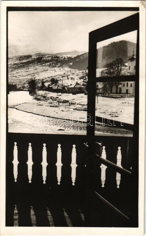 1944 Kőrösmező, Yasinia, Yasinya, Jassinja, Jasina (Máramaros); "Budapest" üdülő és turistaszálló, kilátás a Tiszára. Foto Erődi / tourist hotel, holiday resort in winter, riverbank (EK)
