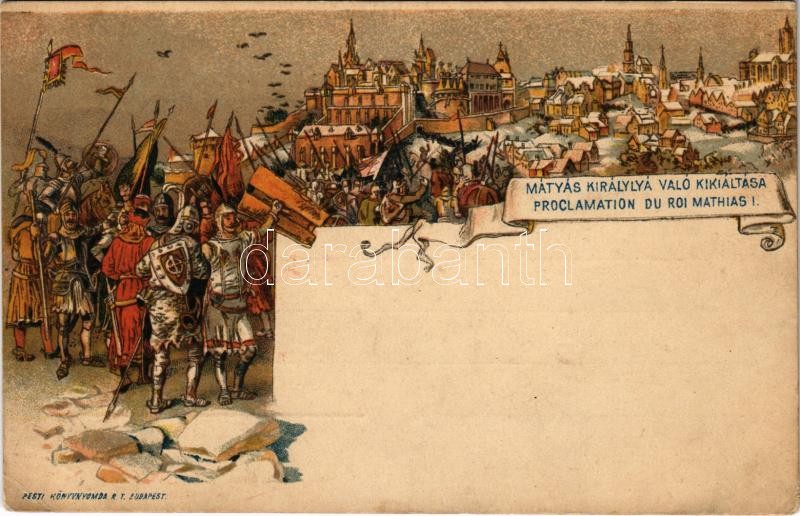 Mátyás királlyá való kikiáltása. Ezredéves Országos Kiállítás / Proclamation du roi Mathias I / coronation of Matthias Corvinus, King of Hungary. Hungarian Millennium Exhibition. brown 2kr Ga. litho (EK)