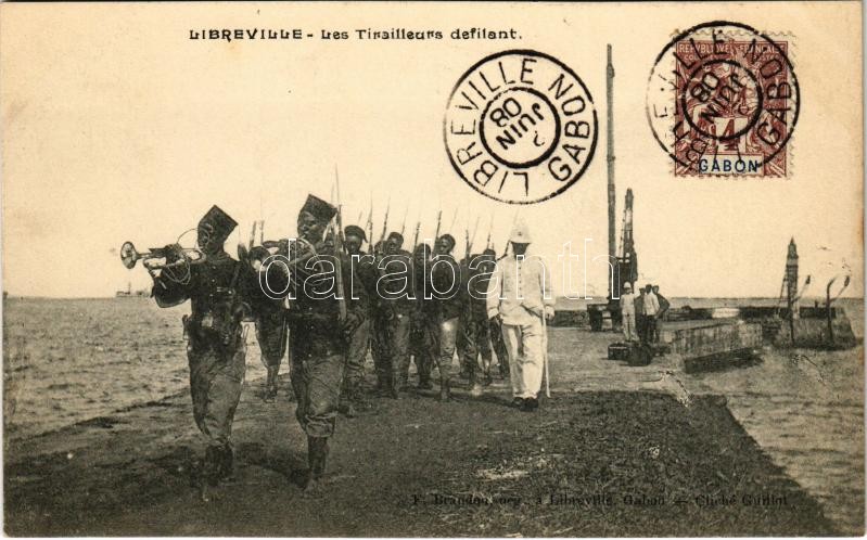 https://www.darabanth.com/en/374-Online-auction/374.0/Postcards/Gabon~2000028/Libreville-Les-Tirailleurs-defilant-light-infantry-procession~II2191258