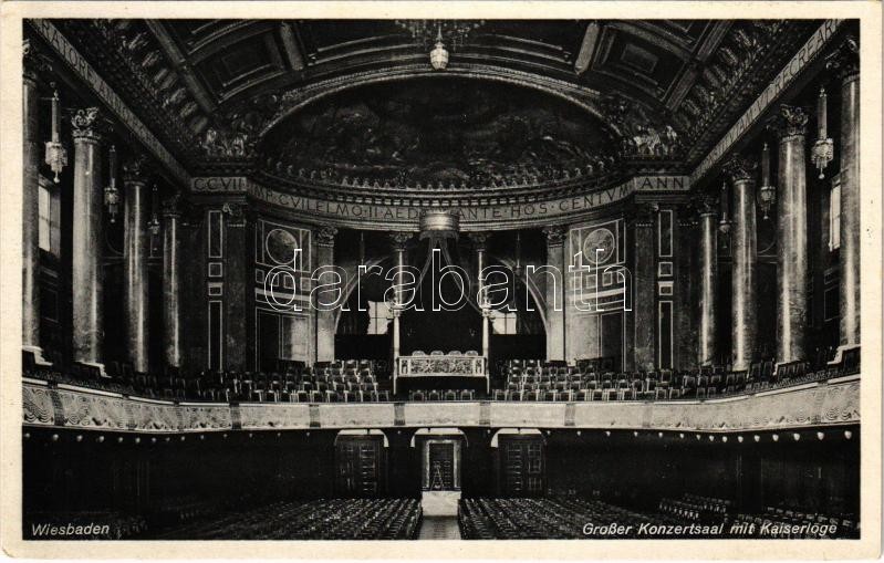 Wiesbaden, Kurhaus, Großer Konzertsaal mit Kaiserloge / spa, bath, concert hall, interior. Aufnahme u. Verlag Foto Kukuk