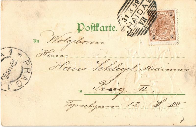 1899 Fröhliche Ostern wünsch / Easter greeting, dancing rabbits. Emb. ...