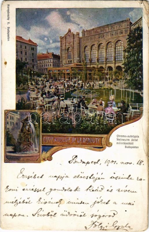 1901 Budapest V. Fővárosi Vigadó és Kávéház kioszk. Chromo-autotypia Weinwurm Antal műintézetéből. Hornyánszky V. / Caffe Kiosk De La Redoute (EK)
