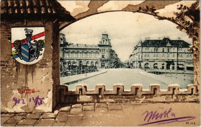 1902 Szeged. Szecessziós litho keret címerrel, Art Nouveau