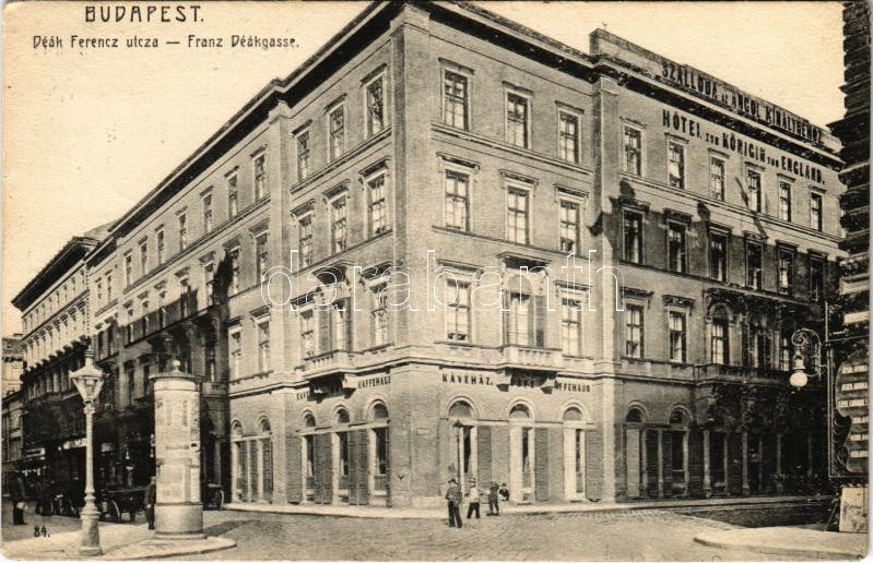 1909 Budapest V. Deák Ferenc utca, Szálloda és kávéház az Angol Király...