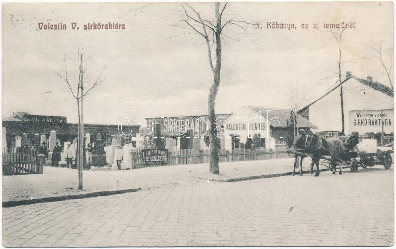 https://www.darabanth.com/en/374-Online-auction/374.0/Postcards/Hungary~2000004/1911-Budapest-X-Kobanya-Valentin-Vilmos-sirkoraktara-az-uj-temetonel-r~II2191979