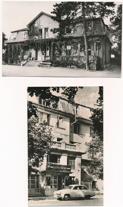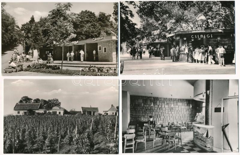 Description: Balatonfüred. Képzőművészeti Alap Kiadóvállalat - 8 db modern képeslap (Bazár sor, KIOSZ üdülő eszpresszója, Park, Aranycsillag szálló, Baricskai csárda, Széchenyi István szobor, pedagógus üdülő) / 8 modern postcards