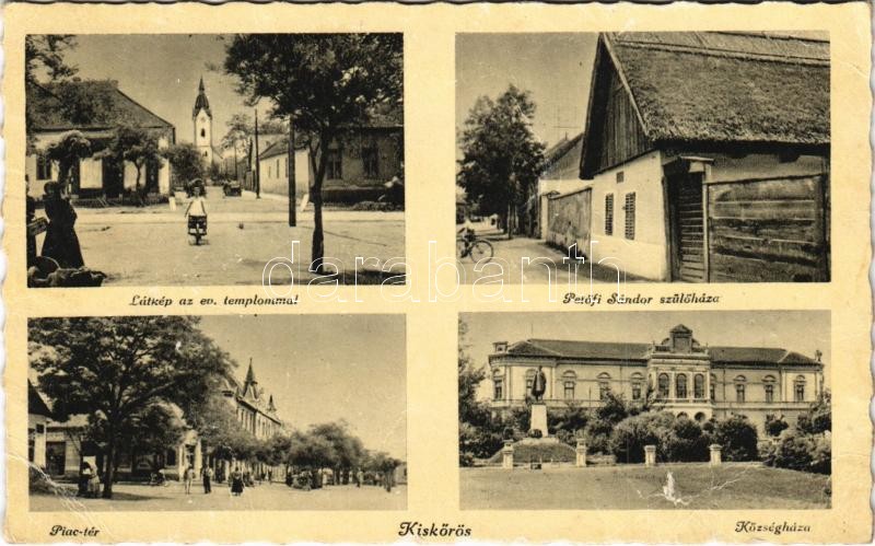 Kiskőrös, Piac tér, Petőfi Sándor szülőháza, községháza, evangélikus t...