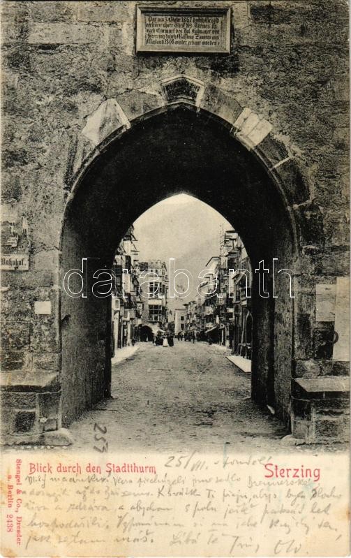 1904 Vipiteno, Sterzing (Südtirol); Blick durch den Stadtturm / street view, city tower (fl)