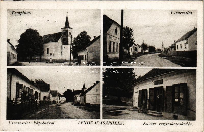 1944 Dobronak, Lendvavásárhely, Dobrovnik; Templom, utca, Posta, Kápolna, Kovács üzlete, kerékpár / church, street view, post office, chapel, shop, bicycle