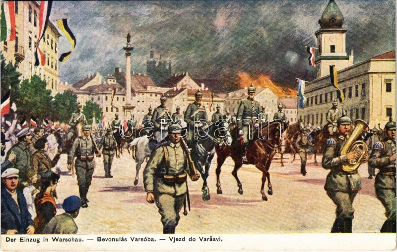 Bevonulás Varsóba / Der Einzug in Warschau / WWI German military art postcard, entry to Warsaw. G.G.W. II. Nr. 126.