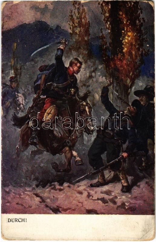 Durch! / WWI K.u.K. (Austro-Hungarian) military art postcard. A.F.W. III/2. Nr. 682. (EK)