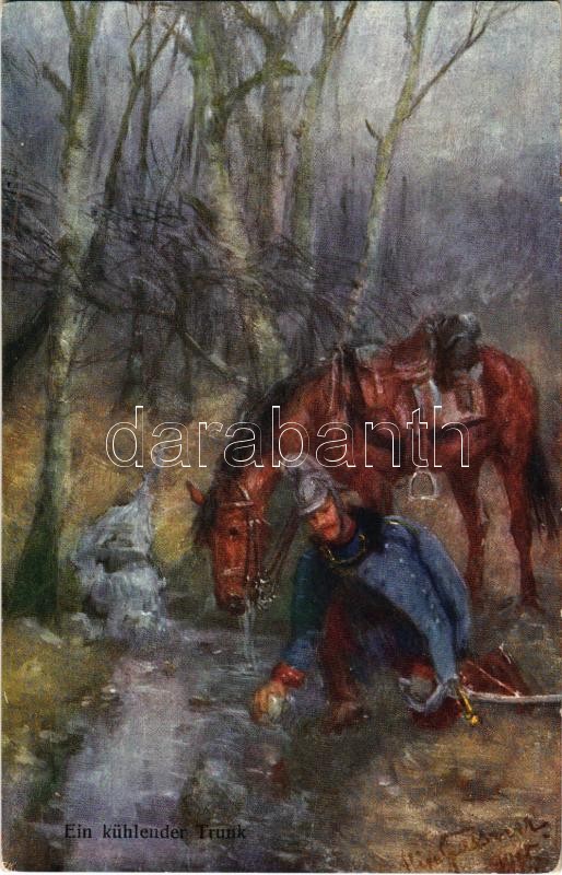 Ein kühlender Trunk / WWI K.u.K. (Austro-Hungarian) military art postcard. B.K.W.I 259-111. s: Gassner
