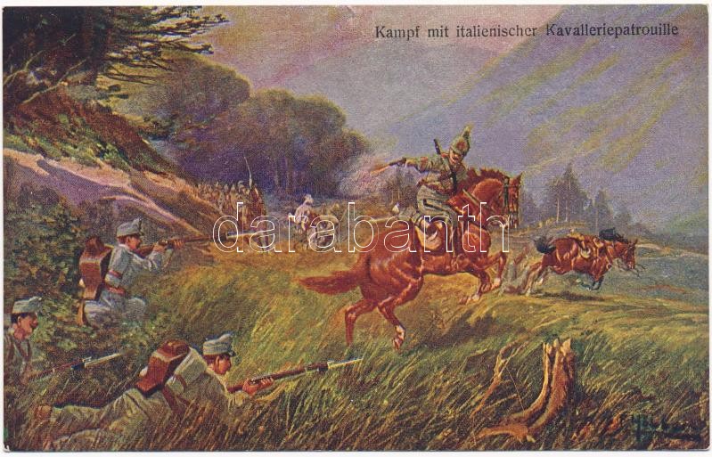 Kampf mit italienischer Kavalleriepatrouille / WWI K.u.K. (Austro-Hungarian) military art postcard s: F. Höllerer
