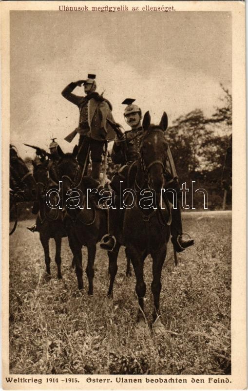 https://www.darabanth.com/en/374-Online-auction/374.0/Postcards/Militaria~2000083/Weltkrieg-1914-15-Osterr-Ulanen-beobachten-den-Feind-Ulanusok-megfigyelik-az-ellenseget-WW~II2192518