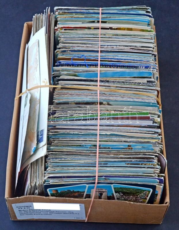 Kb. 800 db MODERN képeslap dobozban: főleg üdvözlő motívumok / Cca. 80...
