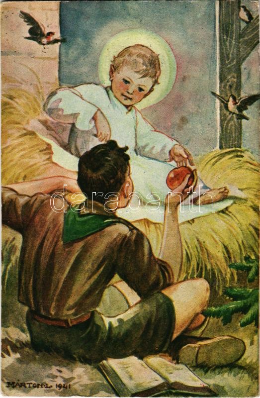 Márton L.-féle Cserkészlevelezőlapok Kiadóhivatala kiadása / Hungarian boy scout art postcard s: Márton L. (EB)