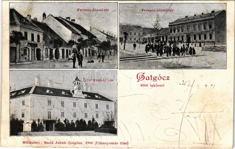 1901 Galgóc, Frasták, Hlohovec; Ferenc József tér, Gróf Erdődy vár. Szold Jakab kiadása / square, castle (EK)