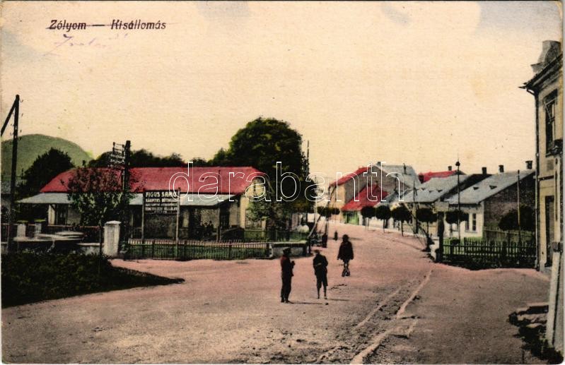 1919 Zólyom, Zvolen; Kisállomás, vasútállomás, Figus Samu üzletének re...