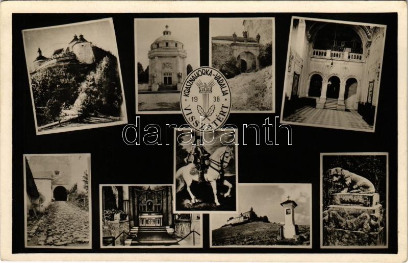 Description: 1940 Krasznahorkaváralja, Krásnohorské Podhradie; Krasznahorkaváralja visszatért! vár, Andrássy mauzóleum, Rákóczi Ferenc. Fenyves Andor kiadása / Hrad Krásna Horka / entry of the Hungarian troops, castle, mausoleum, Francis II Rákóczi