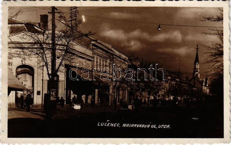 Losonc, Lucenec; Masaryková ul. / Masaryk utca, Szúsz kávéház, üzletek...