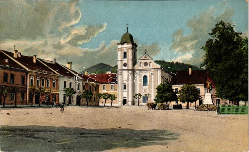 Rozsnyó, Roznava; Rákóczi tér, Fekete Sas szálloda / square, hotel