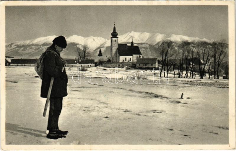 Description: Szentiván, Liptószentiván, Liptovsky Sv. Ján; Vánocni a novorocní pozdrav / Karácsonyi és szilveszteri üdvözlet! Római katolikus templom télen. K. Klimes felvétele, Spolek kiadása / Christmas and New Year greetings! Catholic church in winter