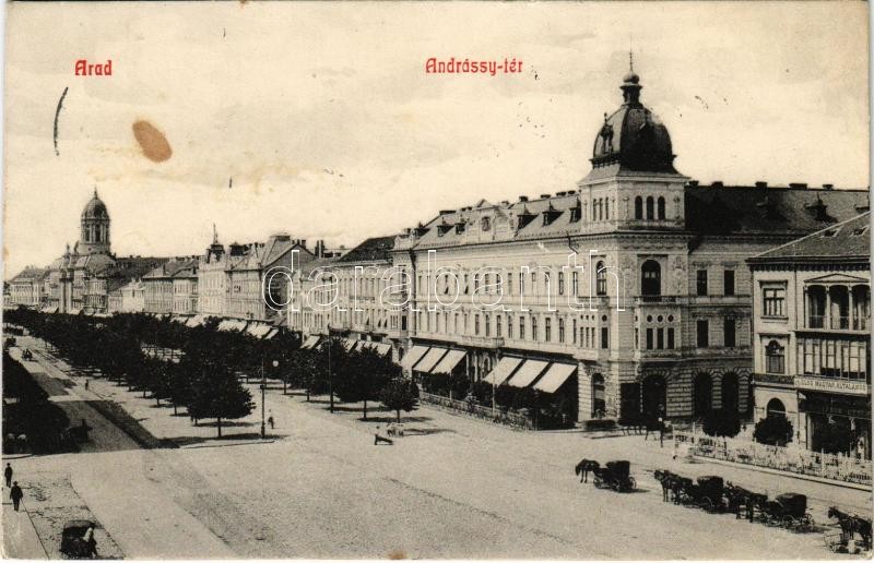 https://www.darabanth.com/en/374-Online-auction/374.0/Postcards/Transylvania~2000005/1909-Arad-Andrassy-ter-sorcsarnok-es-etterem-lovaskocsik-Kerpel-Izso-kiadasa-square-in~II2192036