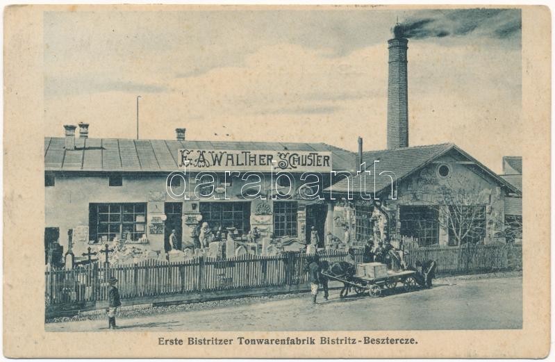 1909 Beszterce, Bistritz, Bistrita; Erste Bistritzer Tonwarenfabrik E.... https://www.darabanth.com/en/374-Online-auction/374.0/Postcards/Transylvania~2000005/1909-Beszterce-Bistritz-Bistrita-Erste-Bistritzer-Tonwarenfabrik-E-A-Walther-Schuster-Elso-B~II2192012
