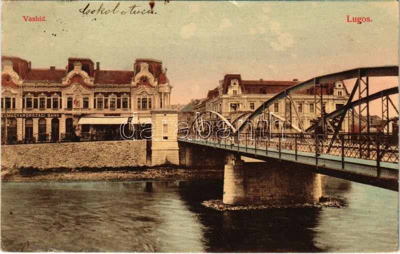 1911 Lugos, Lugoj; Vas híd, Délmagyarországi Bank, Corso kávéház. Nage...