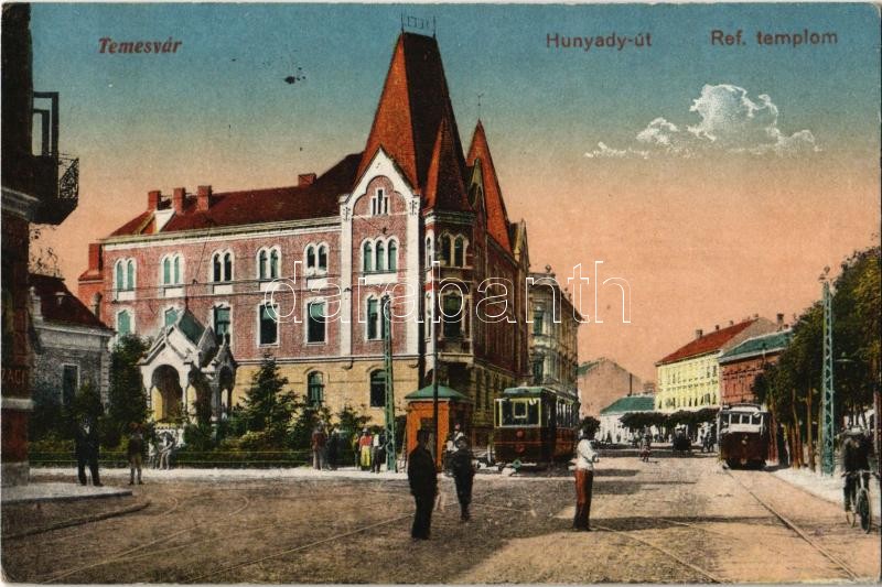 https://www.darabanth.com/en/374-Online-auction/374.0/Postcards/Transylvania~2000005/1917-Temesvar-Timisoara-Hunyady-ut-Reformatus-templom-villamosok-street-Calvinist-church-~II2187889