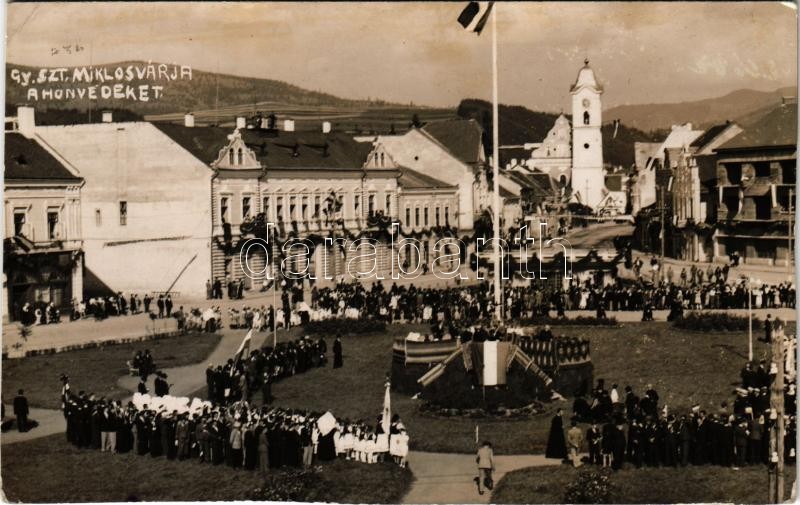 1940 Gyergyószentmiklós, Gheorgheni; a város várja a honvédeket bevonu... https://www.darabanth.com/en/374-Online-auction/374.0/Postcards/Transylvania~2000005/1940-Gyergyoszentmiklos-Gheorgheni-a-varos-varja-a-honvedeket-bevonulaskor-orszagzaszlo-~II2184503