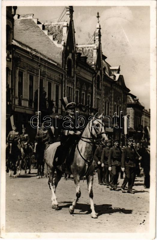 1940 Szatmárnémeti, Satu Mare; bevonulás, Horthy Miklós, magyar zászló...