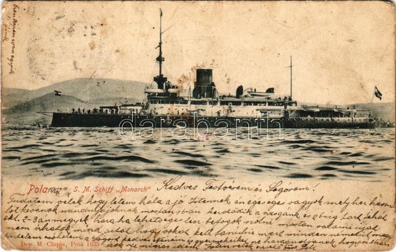 https://www.darabanth.com/en/374-Online-auction/374.0/Postcards/Warships~2000075/1902-SMS-Monarch-osztrak-magyar-Monarch-osztalyu-partvedo-pancelosa-KuK-Kriegsmarine-A~II2189862