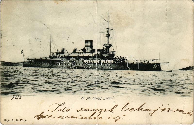 1909 SMS Wien az Osztrák-Magyar Haditengerészet Monarch-osztályú partv... https://www.darabanth.com/en/374-Online-auction/374.0/Postcards/Warships~2000075/1909-SMS-Wien-az-Osztrak-Magyar-Haditengereszet-Monarch-osztalyu-partvedo-csatahajoja-Polaba~II2186064