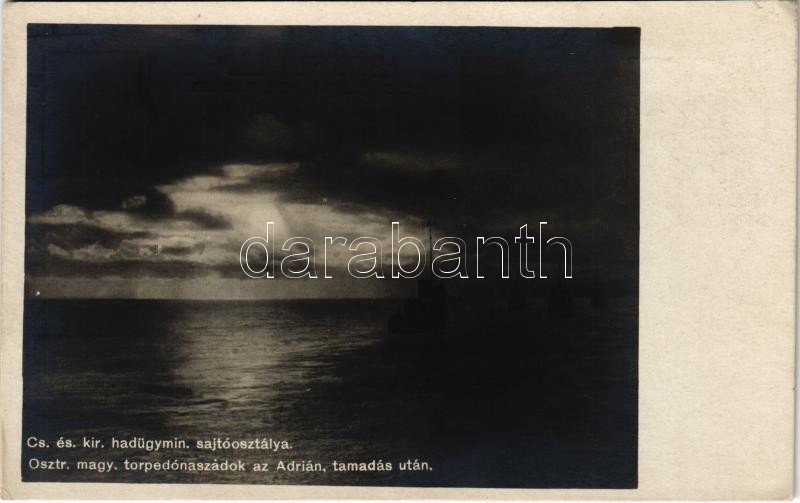 Osztrák-magyar torpedónaszádok az Adrián támadás után. Cs. és kir. had... https://www.darabanth.com/en/374-Online-auction/374.0/Postcards/Warships~2000075/Osztrak-magyar-torpedonaszadok-az-Adrian-tamadas-utan-Cs-es-kir-hadugyminiszterium-sajt~II2186075
