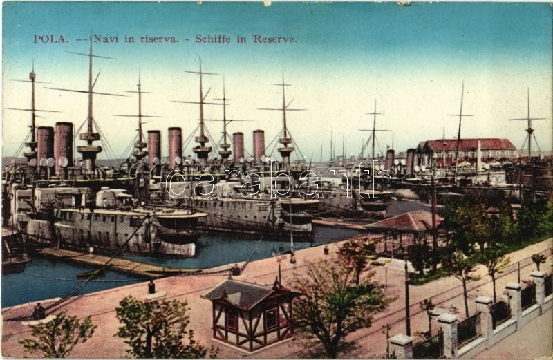Pola, K.u.K. Kriegsmarine Schiffe in Reserve / Navi in Riserva / Osztr... https://www.darabanth.com/en/374-Online-auction/374.0/Postcards/Warships~2000075/Pola-KuK-Kriegsmarine-Schiffe-in-Reserve-Navi-in-Riserva-Osztrak-Magyar-Haditengereszet-cs~II2187915