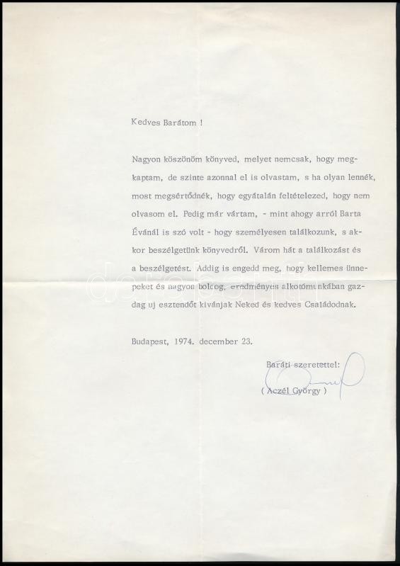 1974 Aczél György (1917-1991) politikus, miniszter gépelt levele egy i... https://www.darabanth.com/en/375-Online-auction/375.0/Art-and-other-collectibles/Autographs~500020/1974-Aczel-Gyorgy-1917-1991-politikus-miniszter-gepelt-levele-egy-ismeretlenhez-benne-ujevi~II2199530