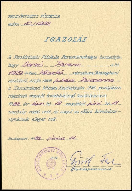 1982 Rendőrtiszti Főiskola által kiadott igazolás vezetői továbbképző ... https://www.darabanth.com/en/375-Online-auction/375.0/Art-and-other-collectibles/Documents~500018/1982-Rendortiszti-Foiskola-altal-kiadott-igazolas-vezetoi-tovabbkepzo-tanfolyamrol-a-fois~II2194059