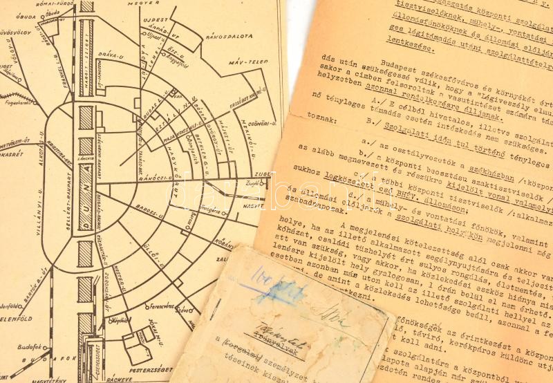 cca 1940 3 közlekedési dokumentum: Irányelvek forgalmi személyzet büntetéseinek kiszabásánál, BHÉV körözvény, vonalhálózati térkép