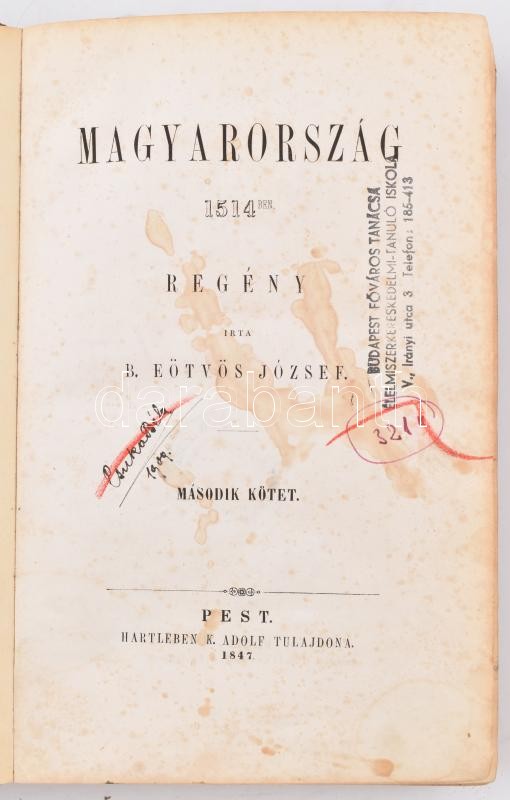 B. Eötvös József: Magyarország 1514-ben. I-II. kötetek. Volt könyvtári... https://www.darabanth.com/en/375-Online-auction/375.0/Books/Books-Other-rarities~1000017/B-Eotvos-Jozsef-Magyarorszag-1514-ben-I-II-kotetek-Volt-konyvtari-peldanyok-Elso-kia~II2193979